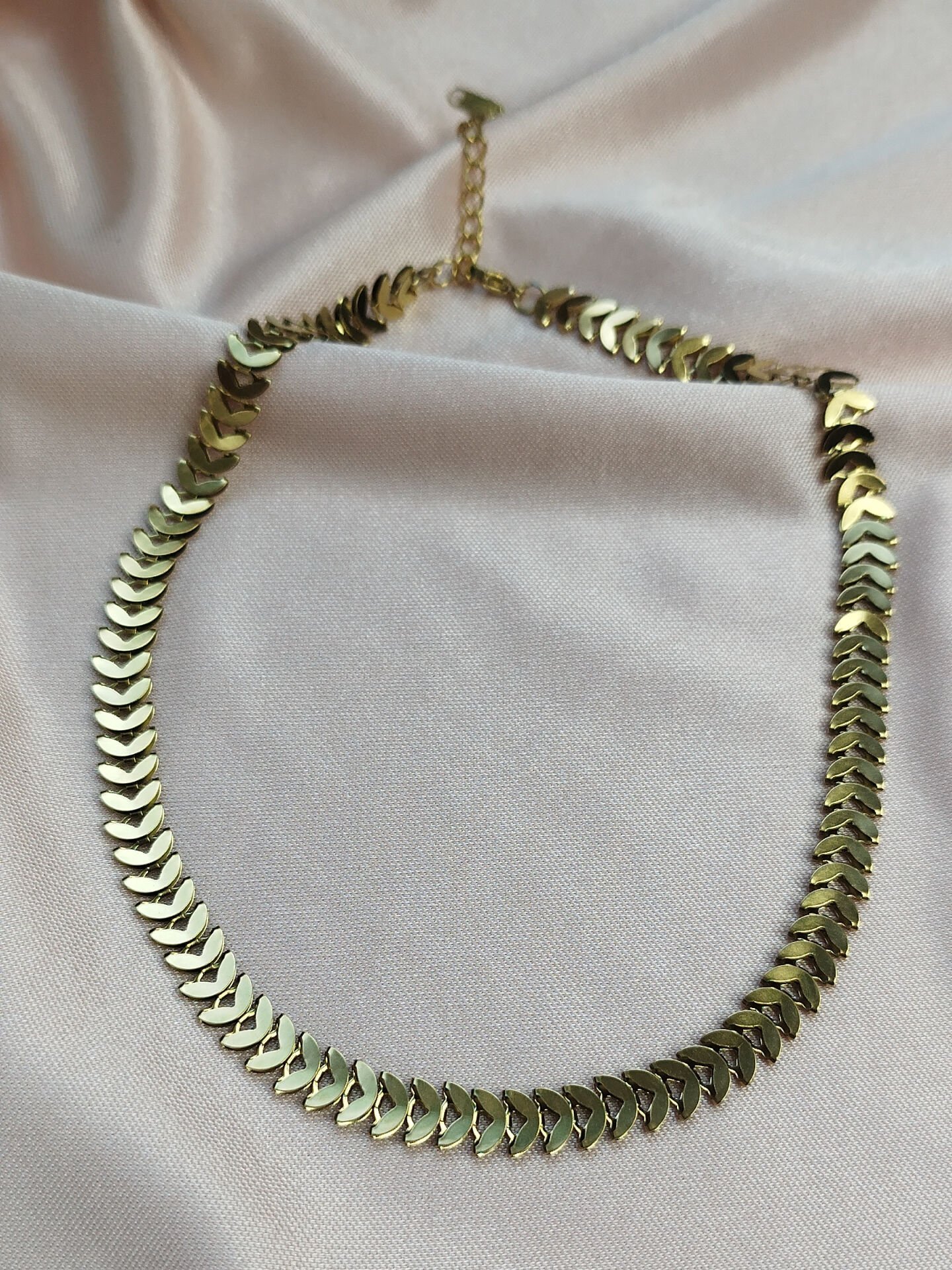 Balık Sırtı Model Gold Çelik Kolye | Sky Fashion