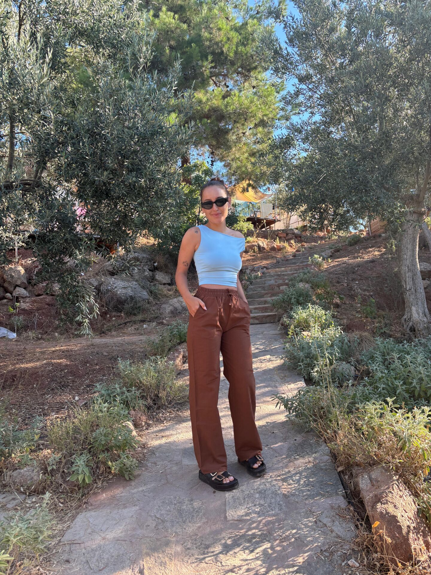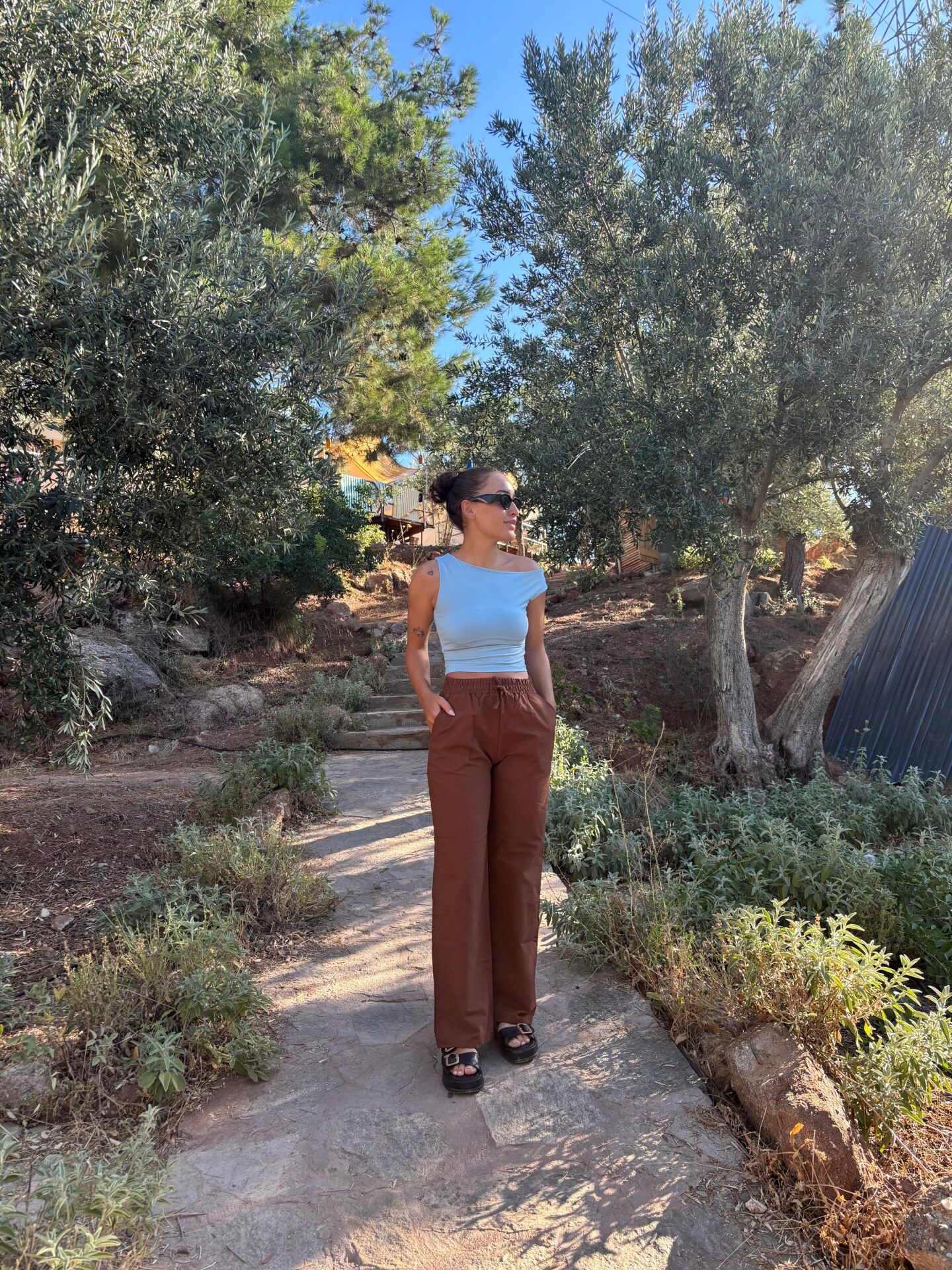 Detaylar: Fit Kesimli Tek Omuz Crop Ve Yüksek Bel, Rahat Kalıp Pantolon