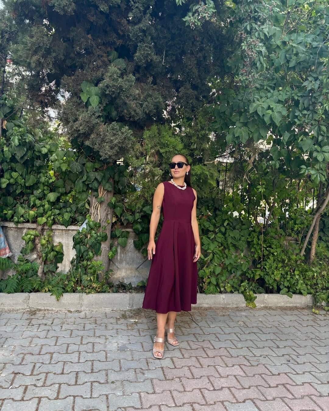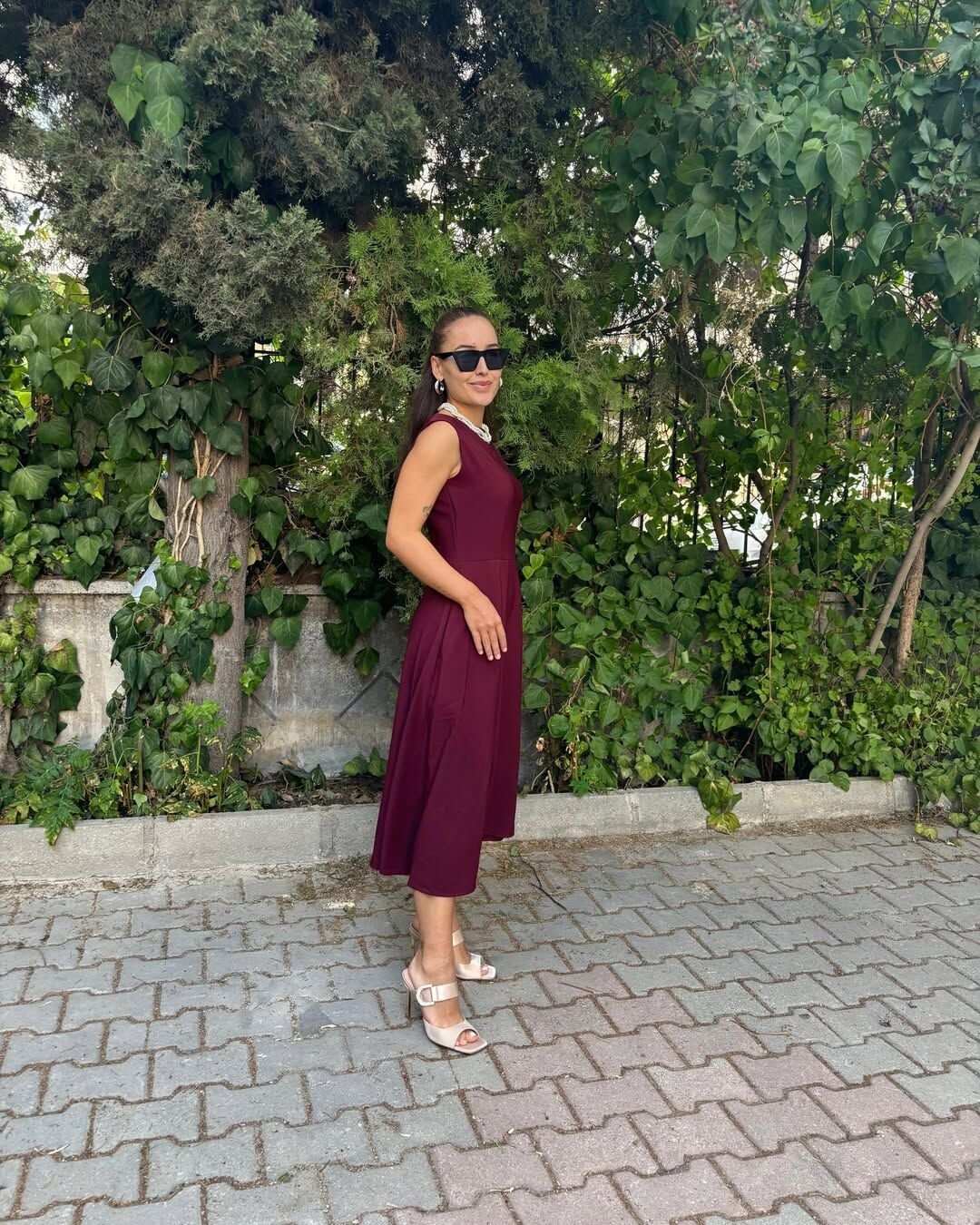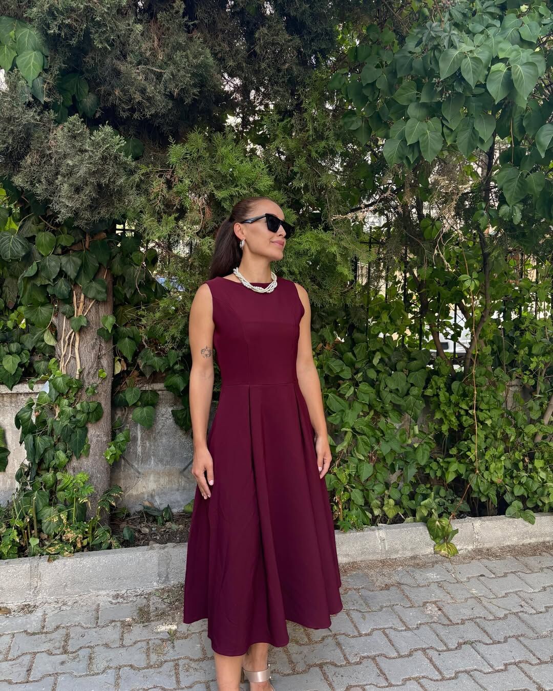 Bordo Krep Kumaş Midi Boy Elbise