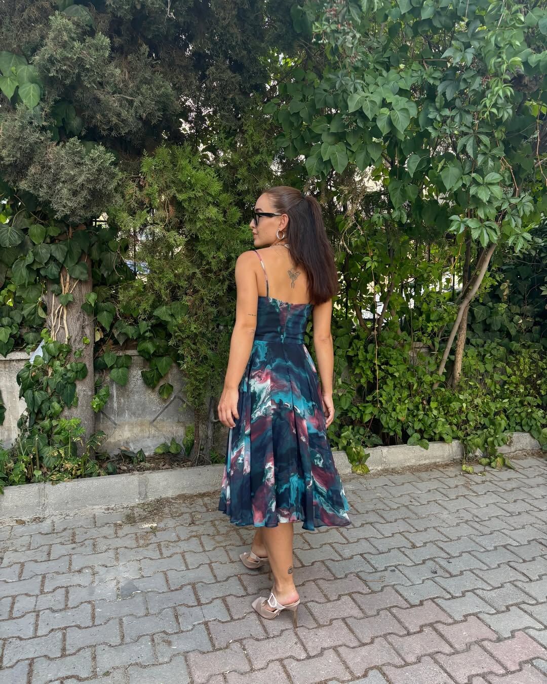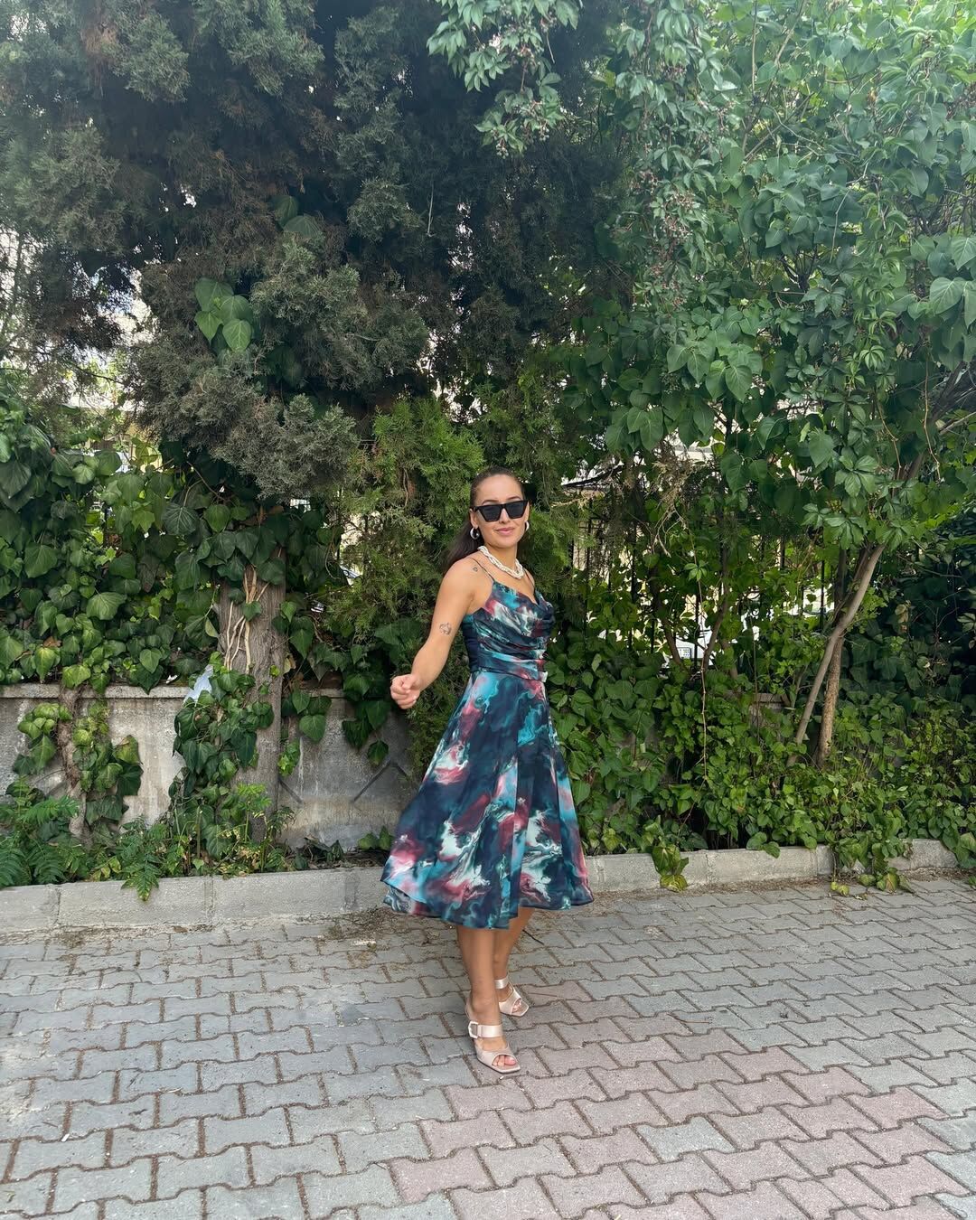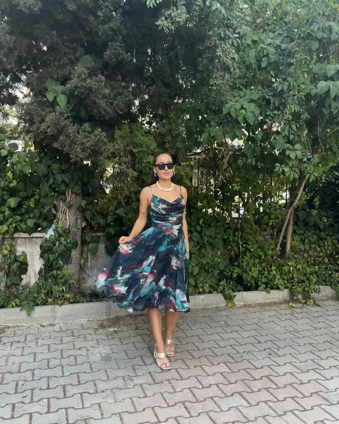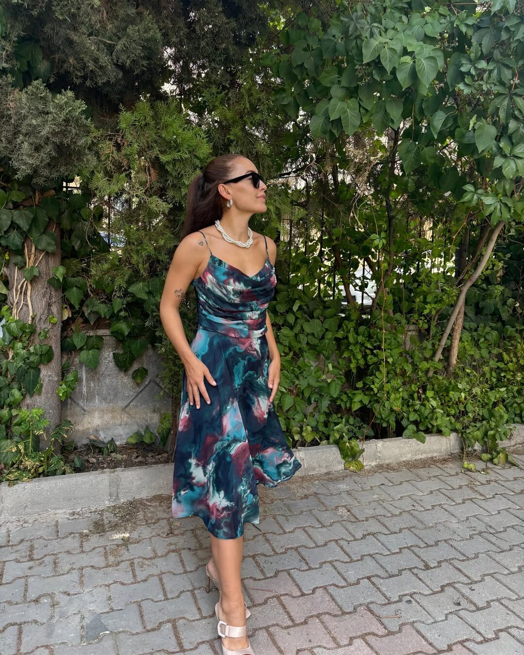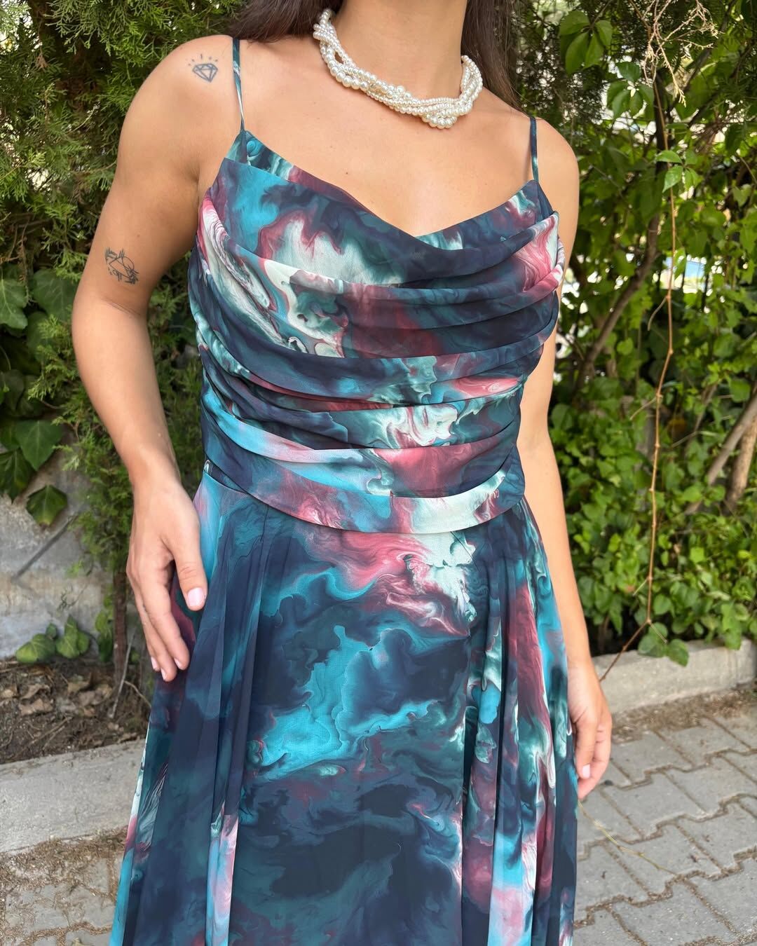 Detay: Drapeli Yaka, İnce Askı Ve Su Dalgası Desen