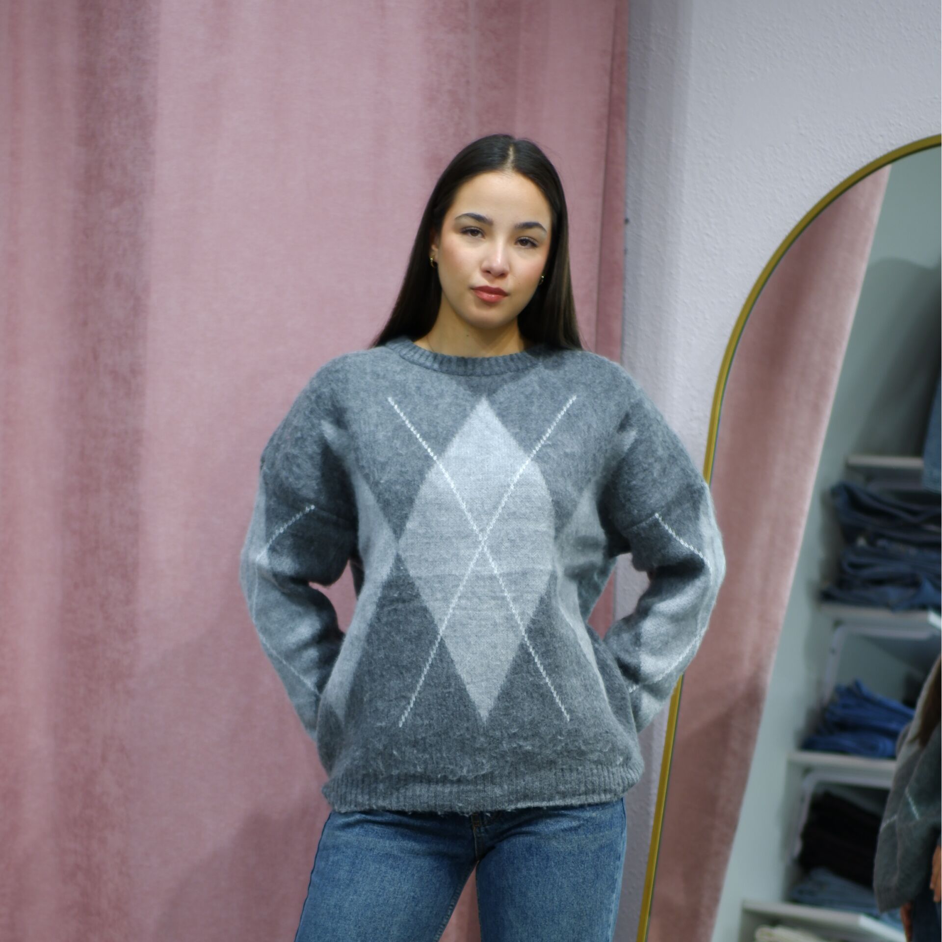 Detay: Modern geometrik desen, günlük ve şık kombinlere uyum sağlar