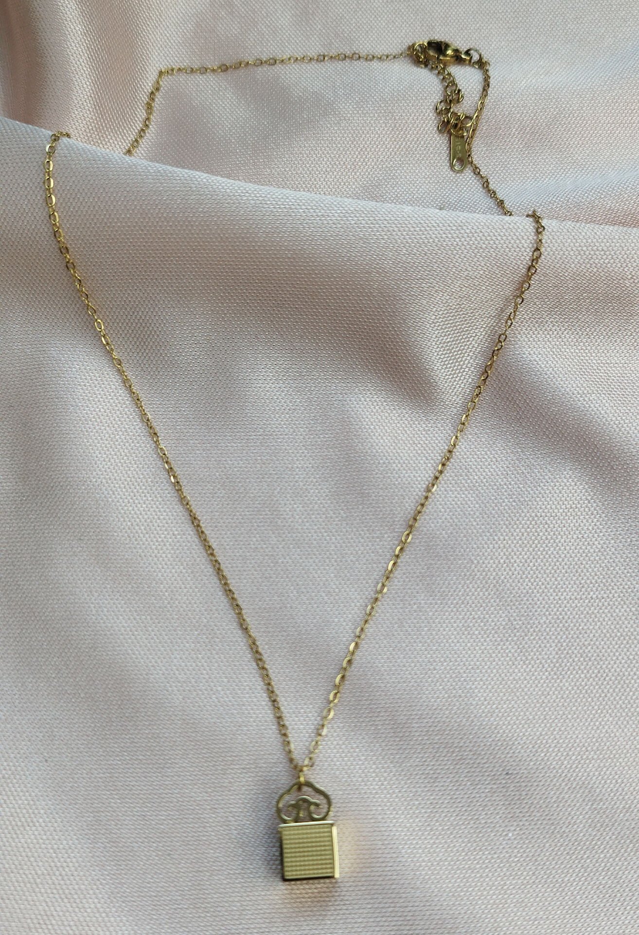 Gold Kilit Formlu Çelik Kolye | Sky Fashion