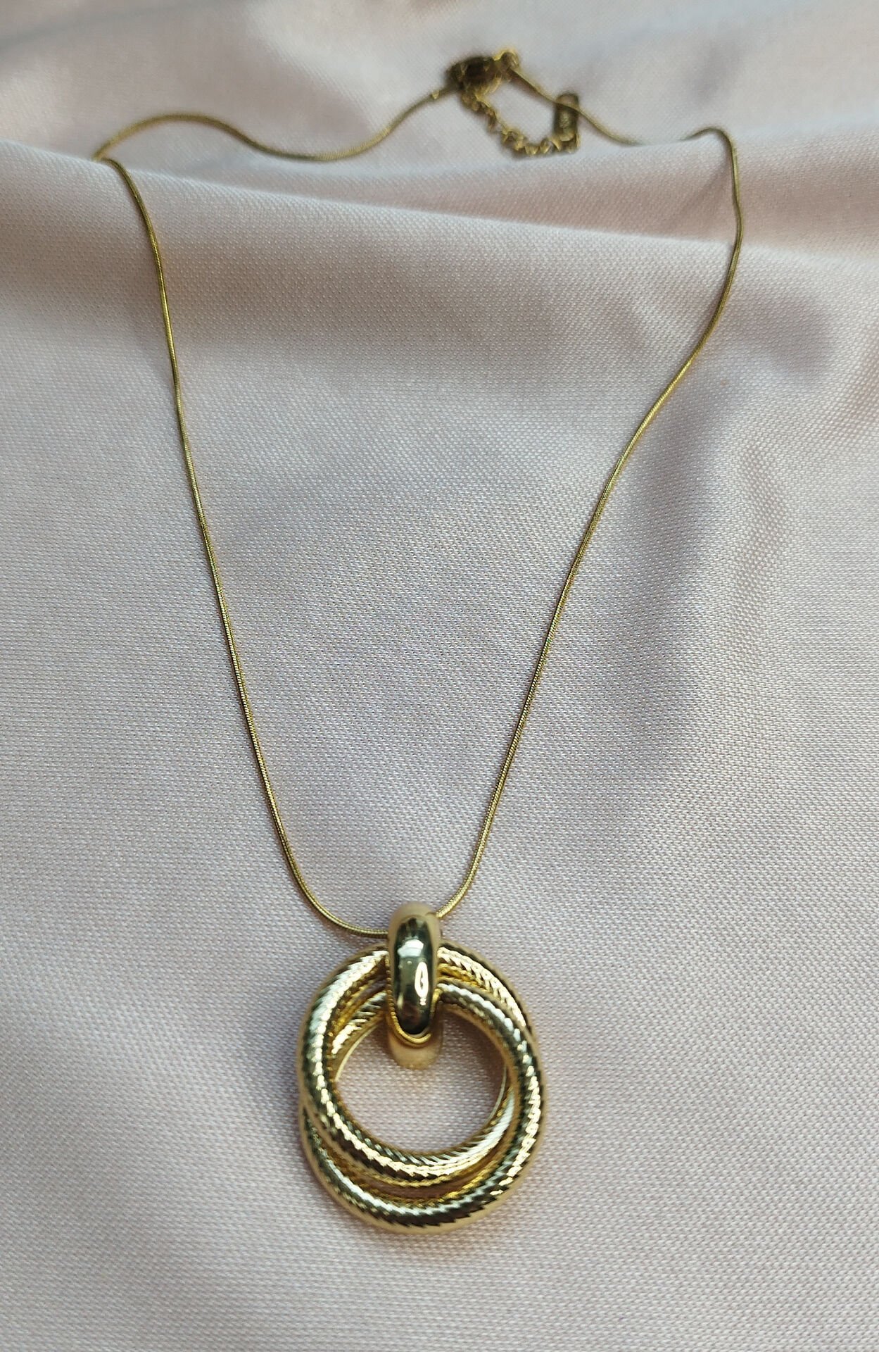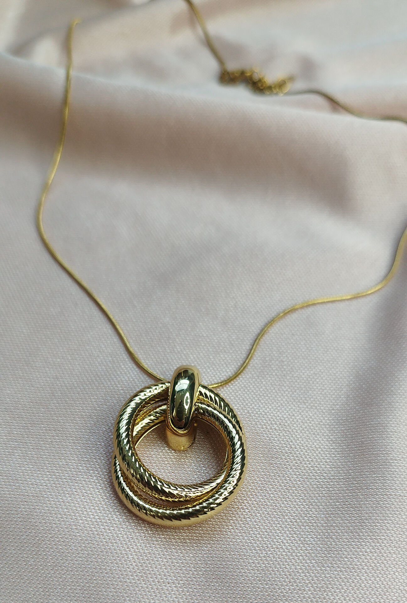 Gold Üç Halkalı Zarif Çelik Kolye | Sky Fashion
