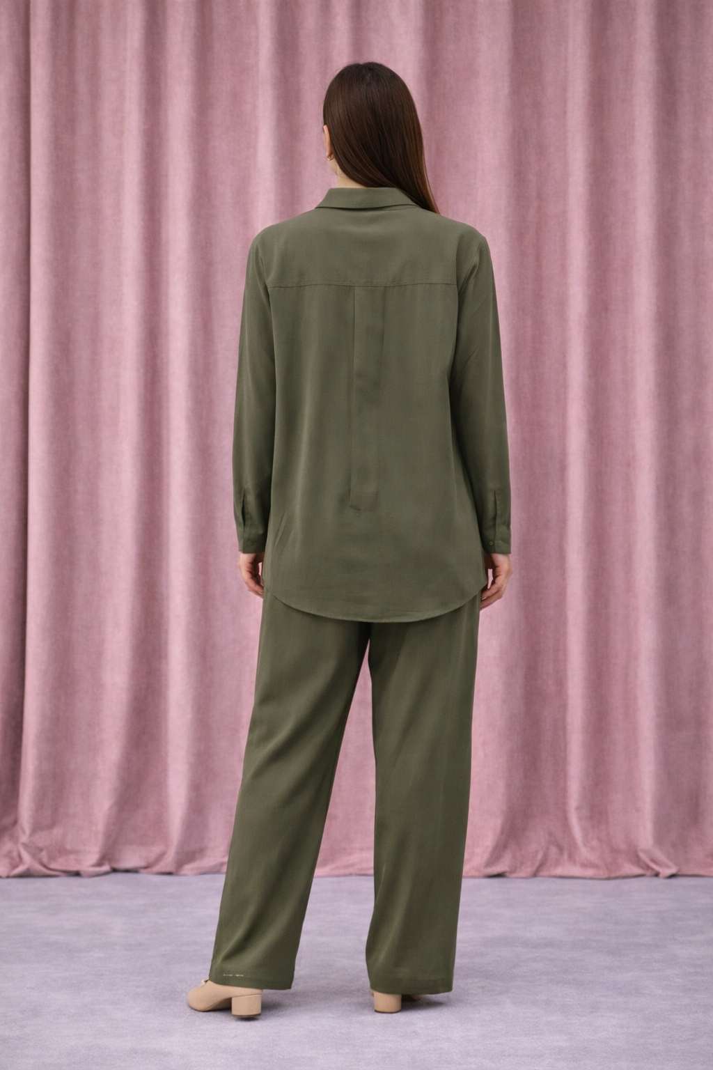 Haki Yeşil Oversize Gömlek & Pantolon Takım