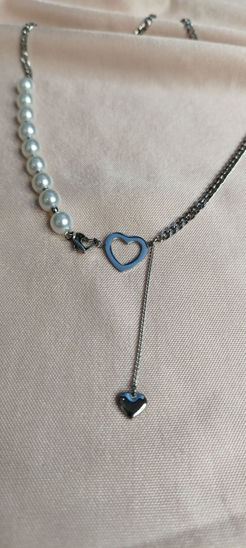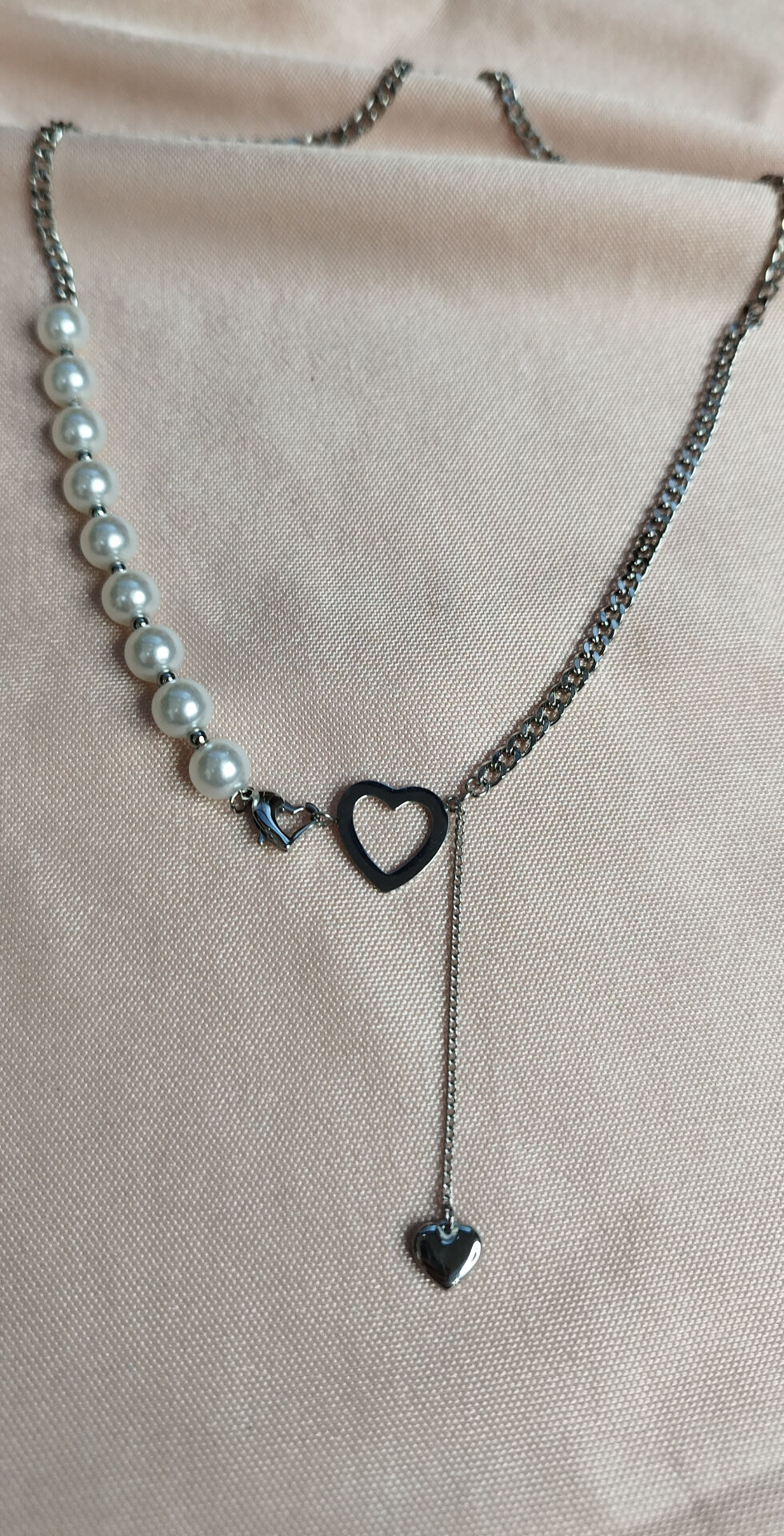 İncili Kalp Detay Gümüş Kolye | Sky Fashion