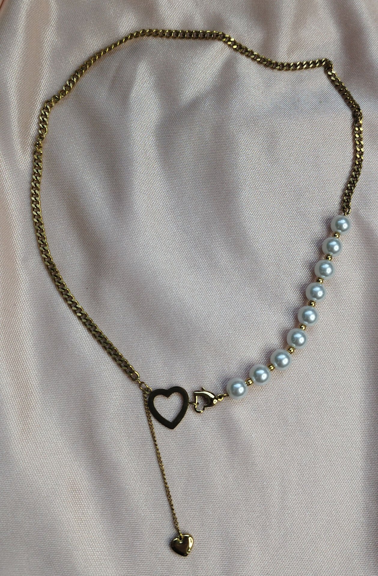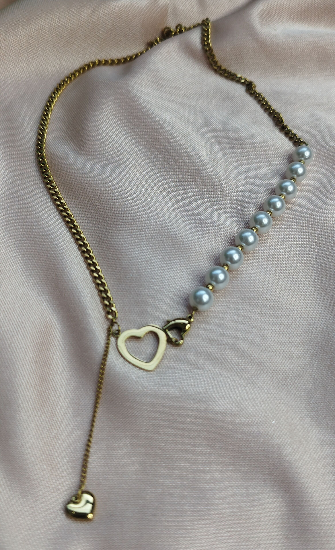İncili Kalp Detay Gold Kolye | Sky Fashion