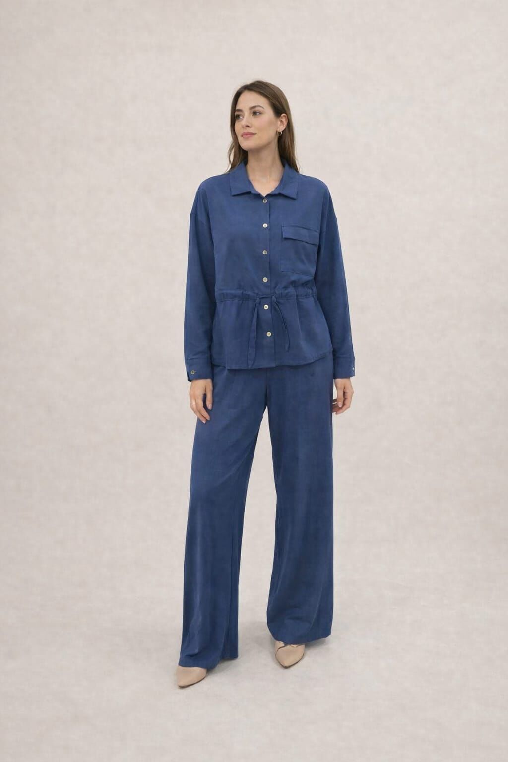 Detay: Üst ve alt parçadan oluşan ikili takım; salaş kesimiyle özgür hareket imkânı sunar, bel bağlama detayıyla stilini kişiselleştirir. Tek parça şıklığıyla kombin derdine son!