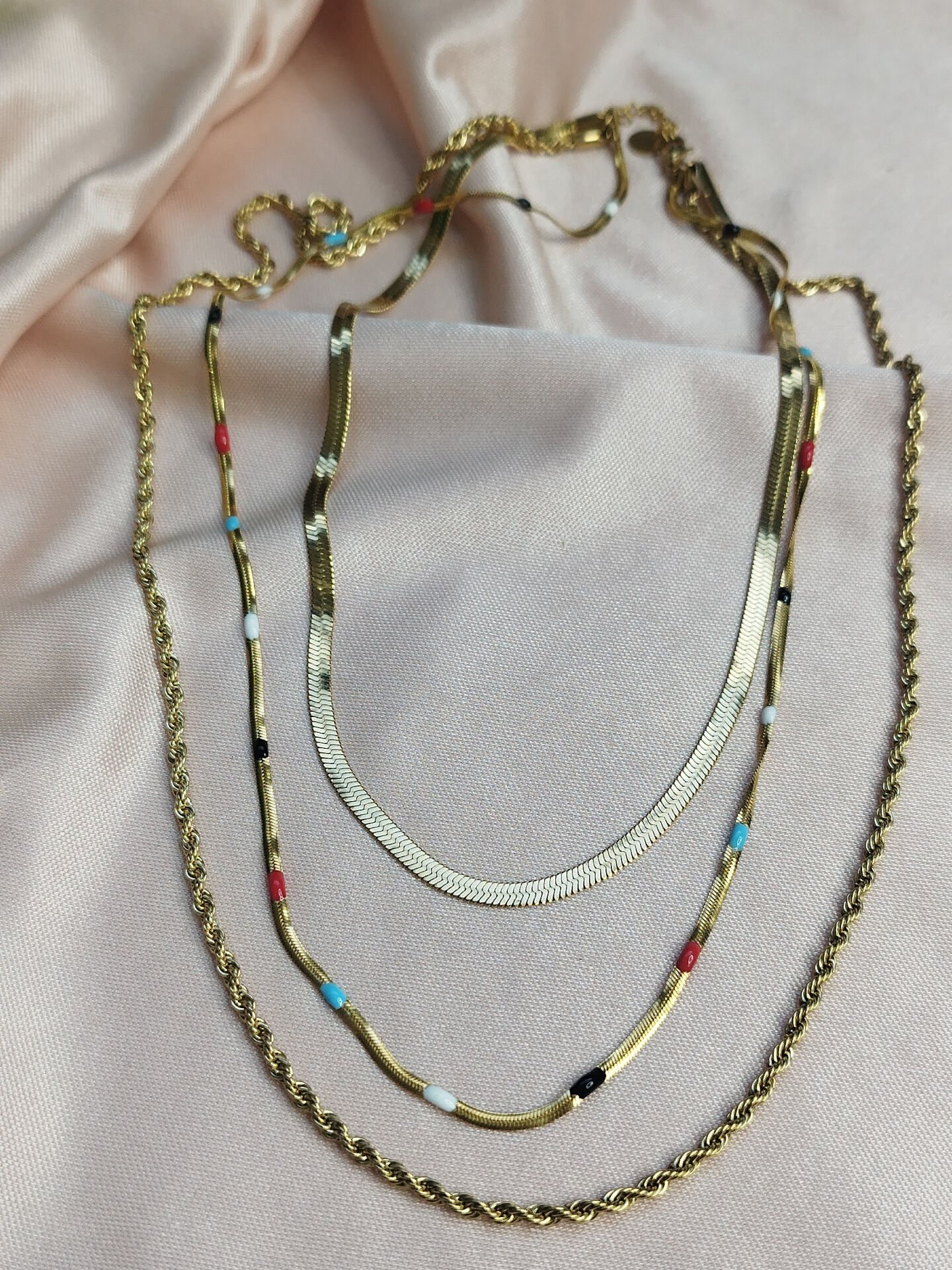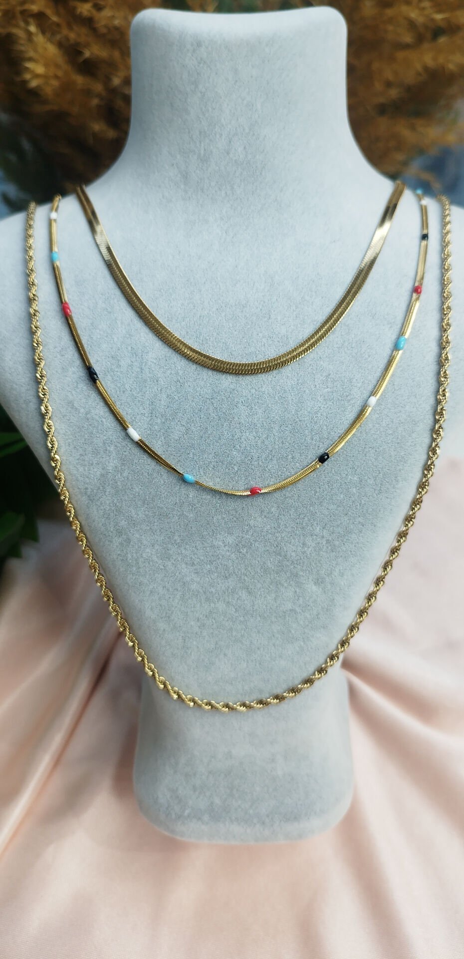 İtalyan Zincir 3 ' Lü Renk Detay Gold Çelik Kolye