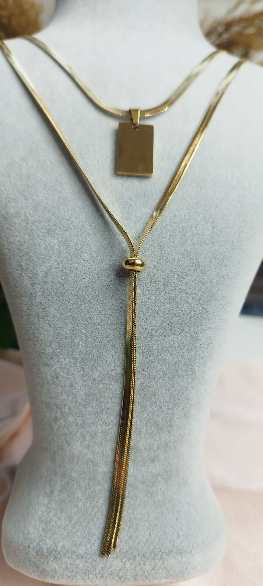 İtalyan Zincir İkili Gold Çelik Kolye | Sky Fashion
