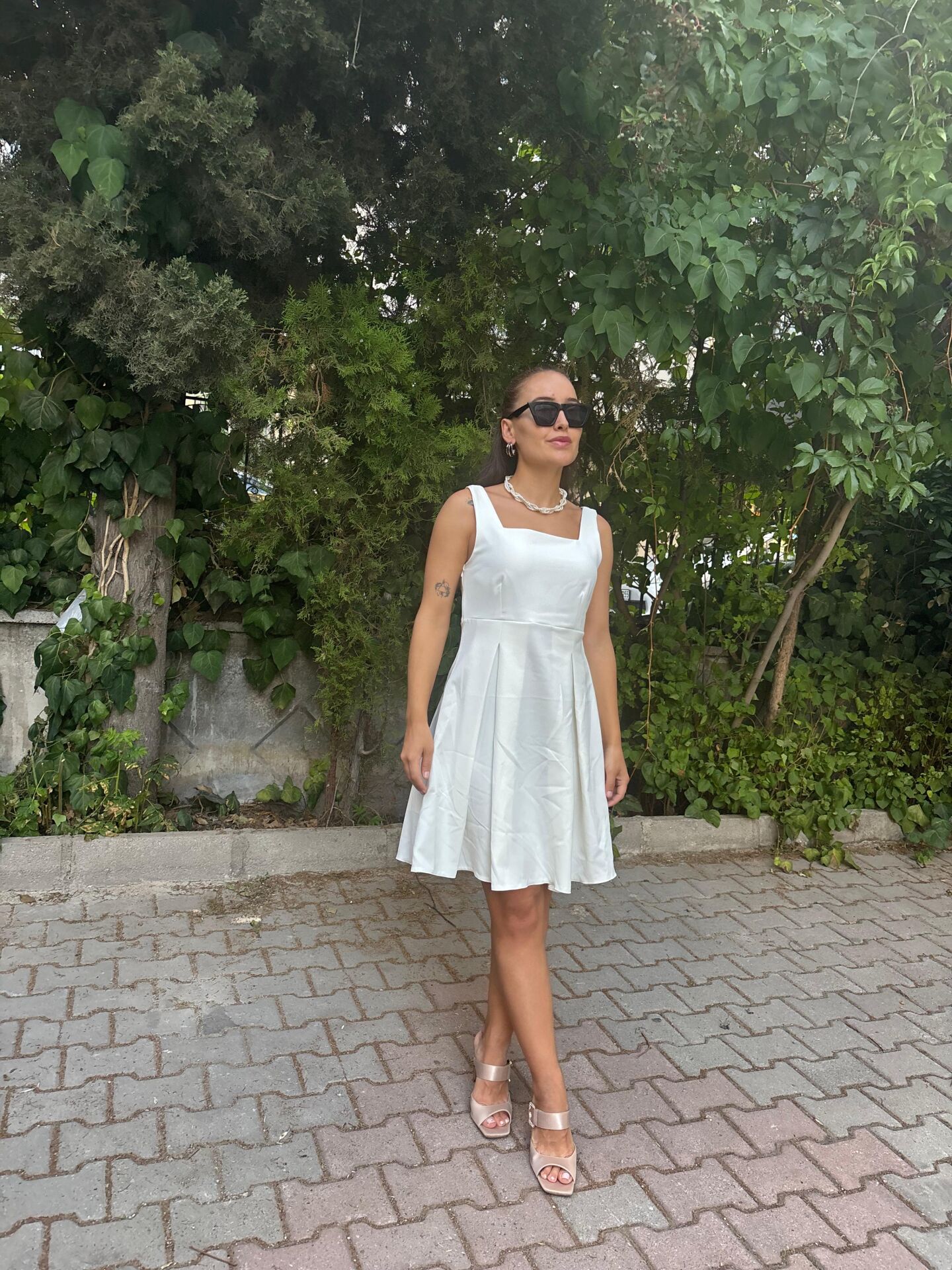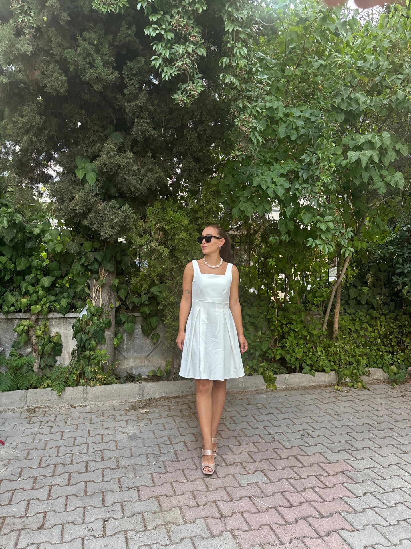 Detay: Geniş kare yaka, zarif kolsuz tasarım, hem günlük hem özel davetler için ideal