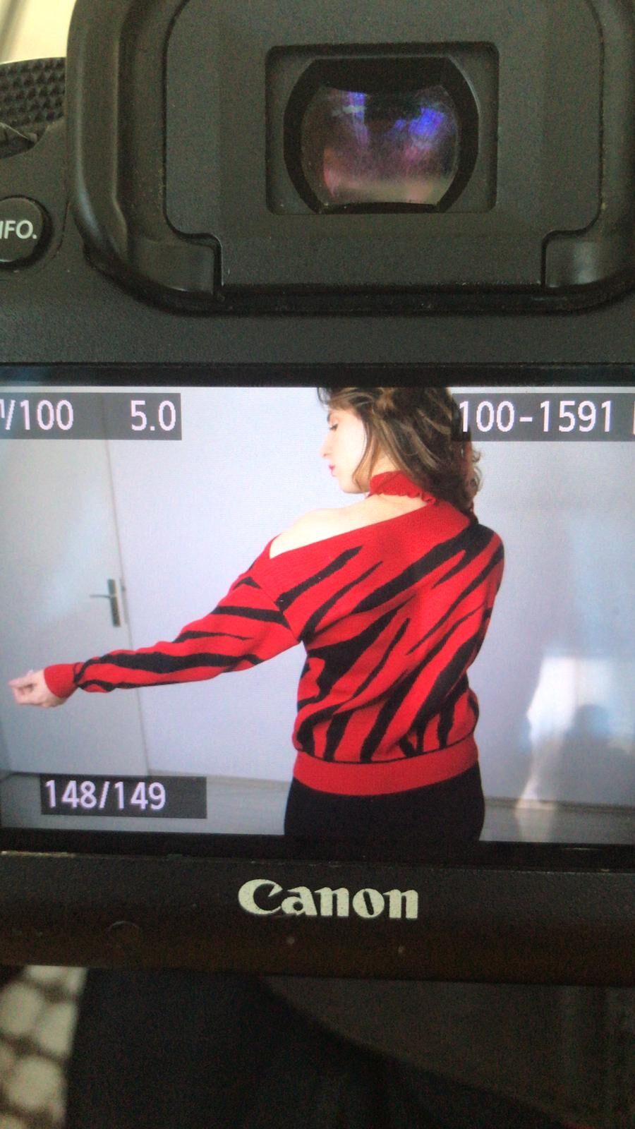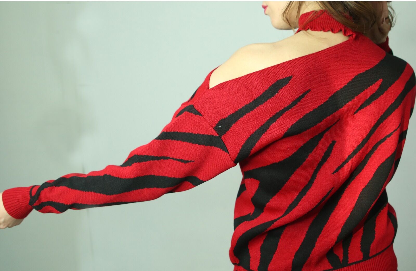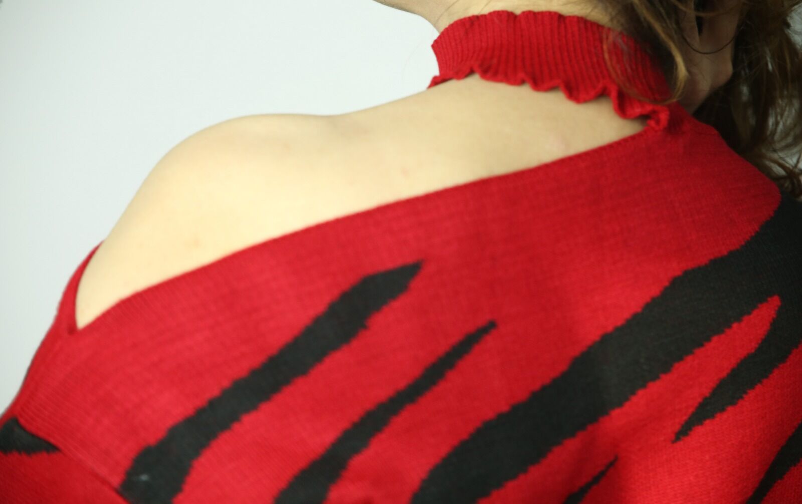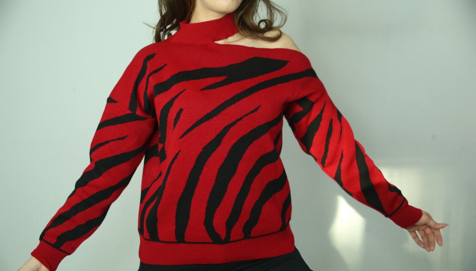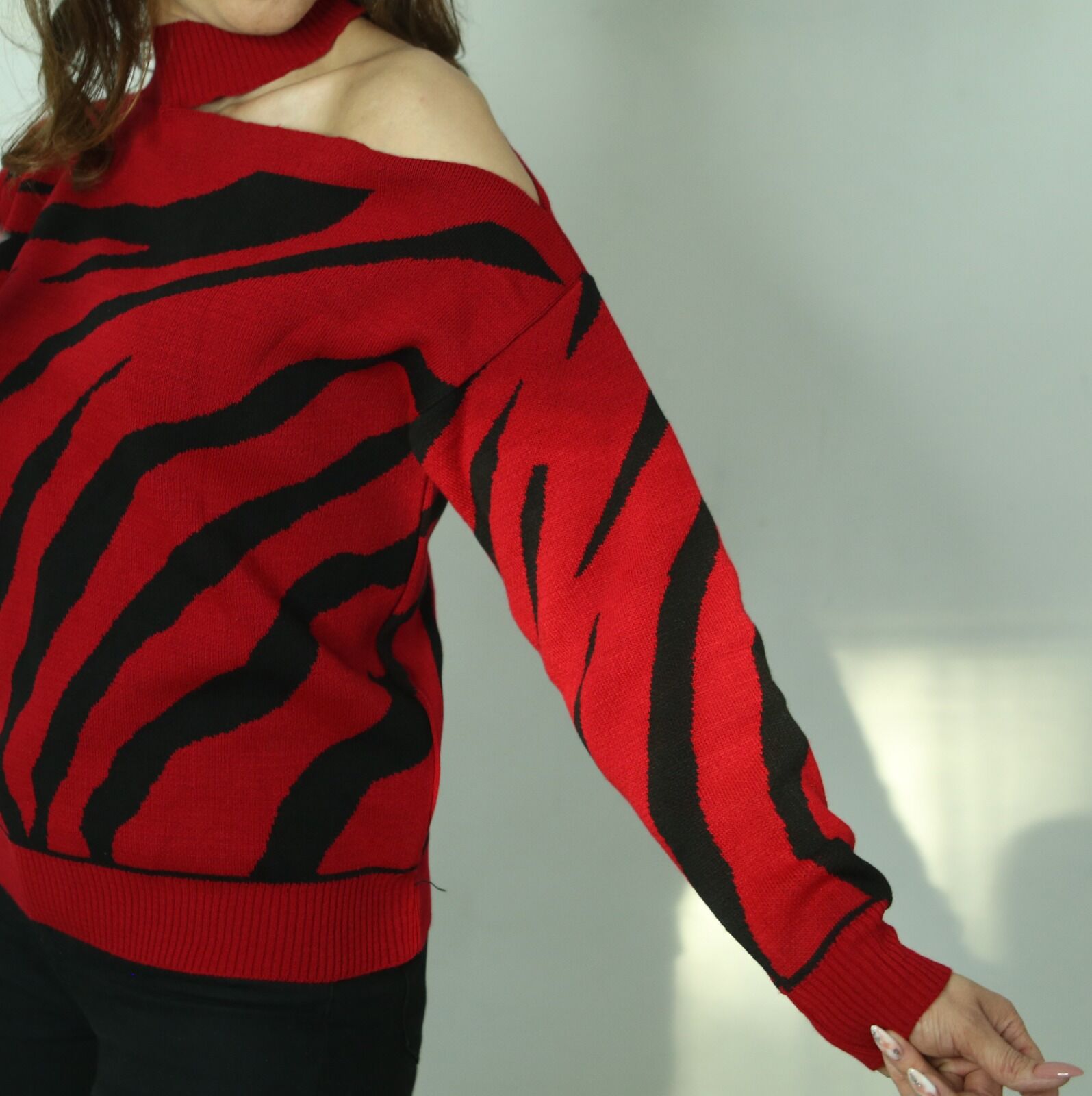 Kırmızı/Siyah Omuz Detay Triko Bluz