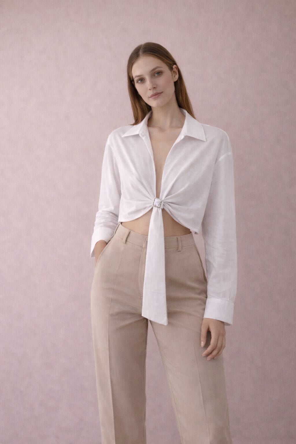 Ön kısmındaki tokalı bağlama detayı tasarıma modern ve feminen bir görünüm kazandırır.