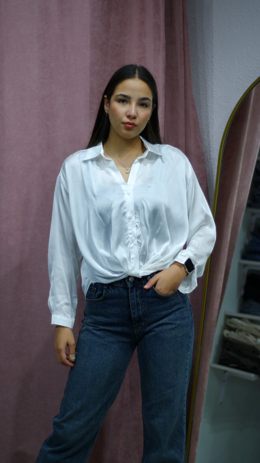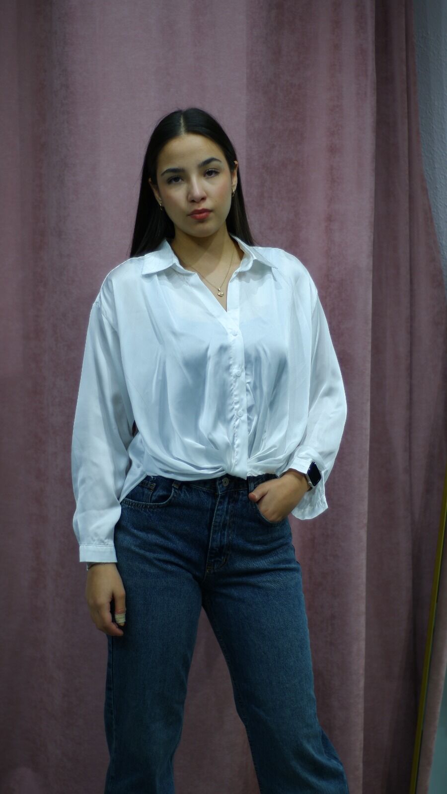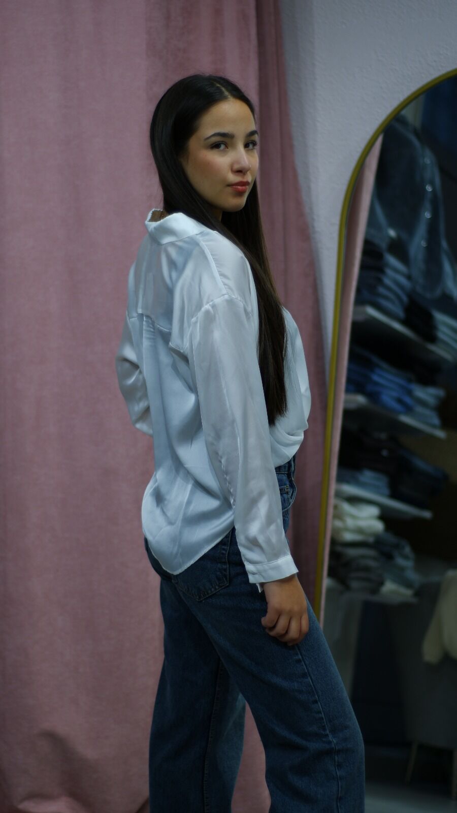 Kumaş: Akışkan, hafif parlak saten doku