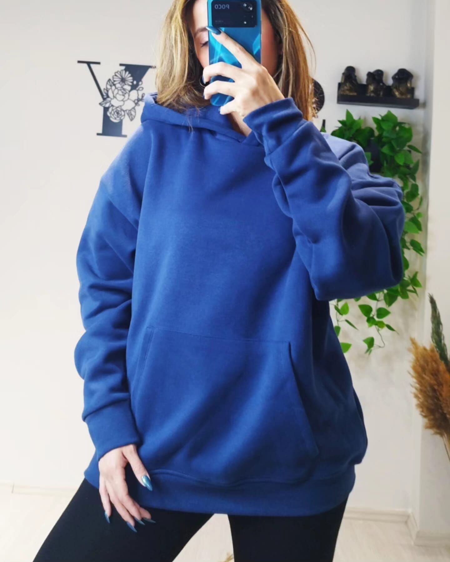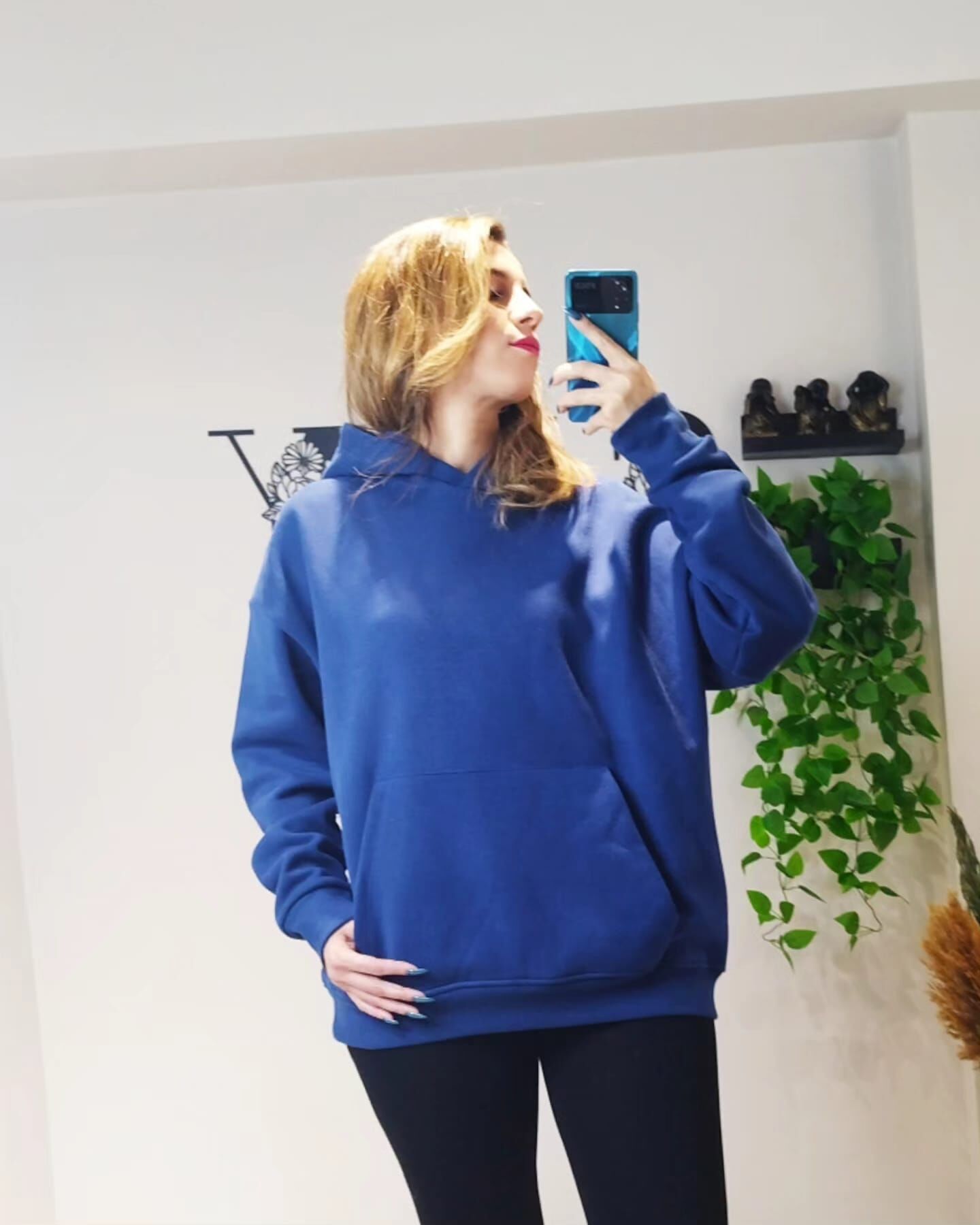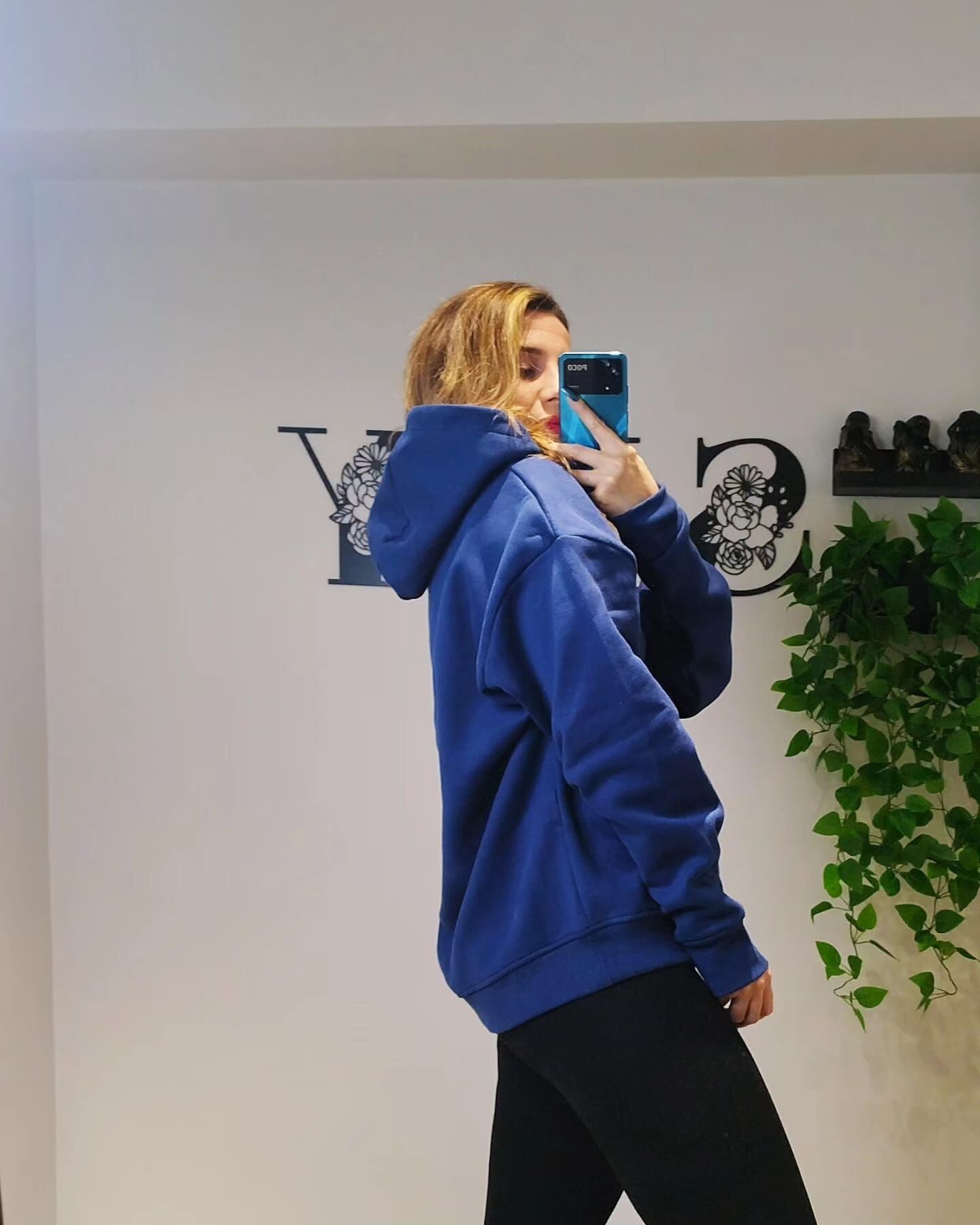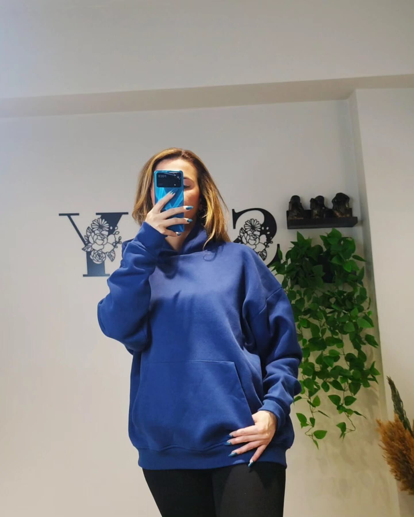 Yüksek Kaliteli Pamuklu Kumaşıyla Oversize Kobalt Mavi Sweat